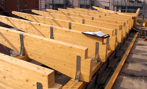 Der Holzbau kann außer für die Dachstühle auch für Gauben, Garagen und Carports eingesetzt werden.